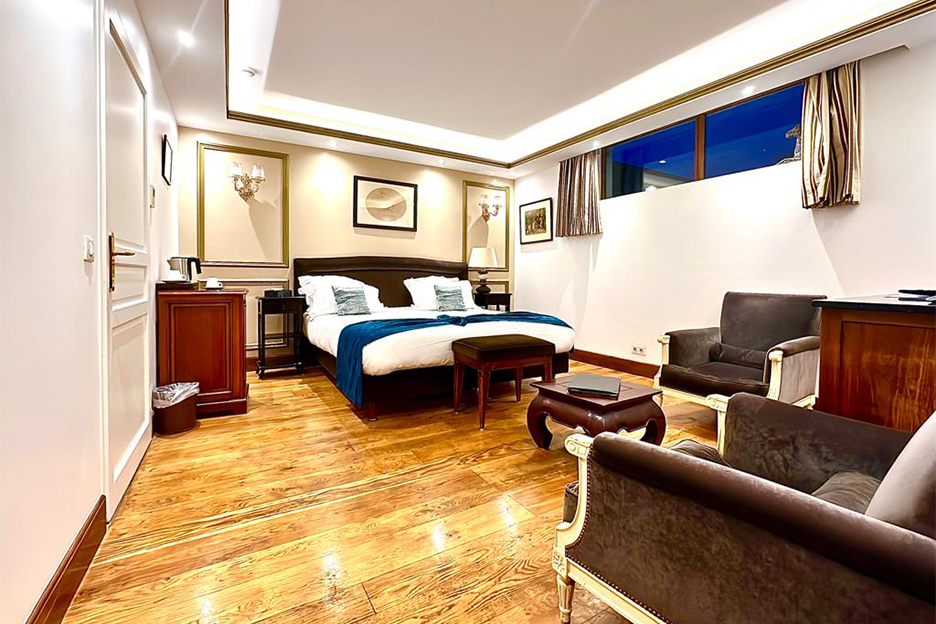 Les chambres Deluxe disposent de tout le confort pour rendre votre séjour des plus agréables. Elles proposent une literie de qualité avec un lit double ou twin et d’une salle de bain avec baignoire ou douche – Une balnéo est possible sur demande